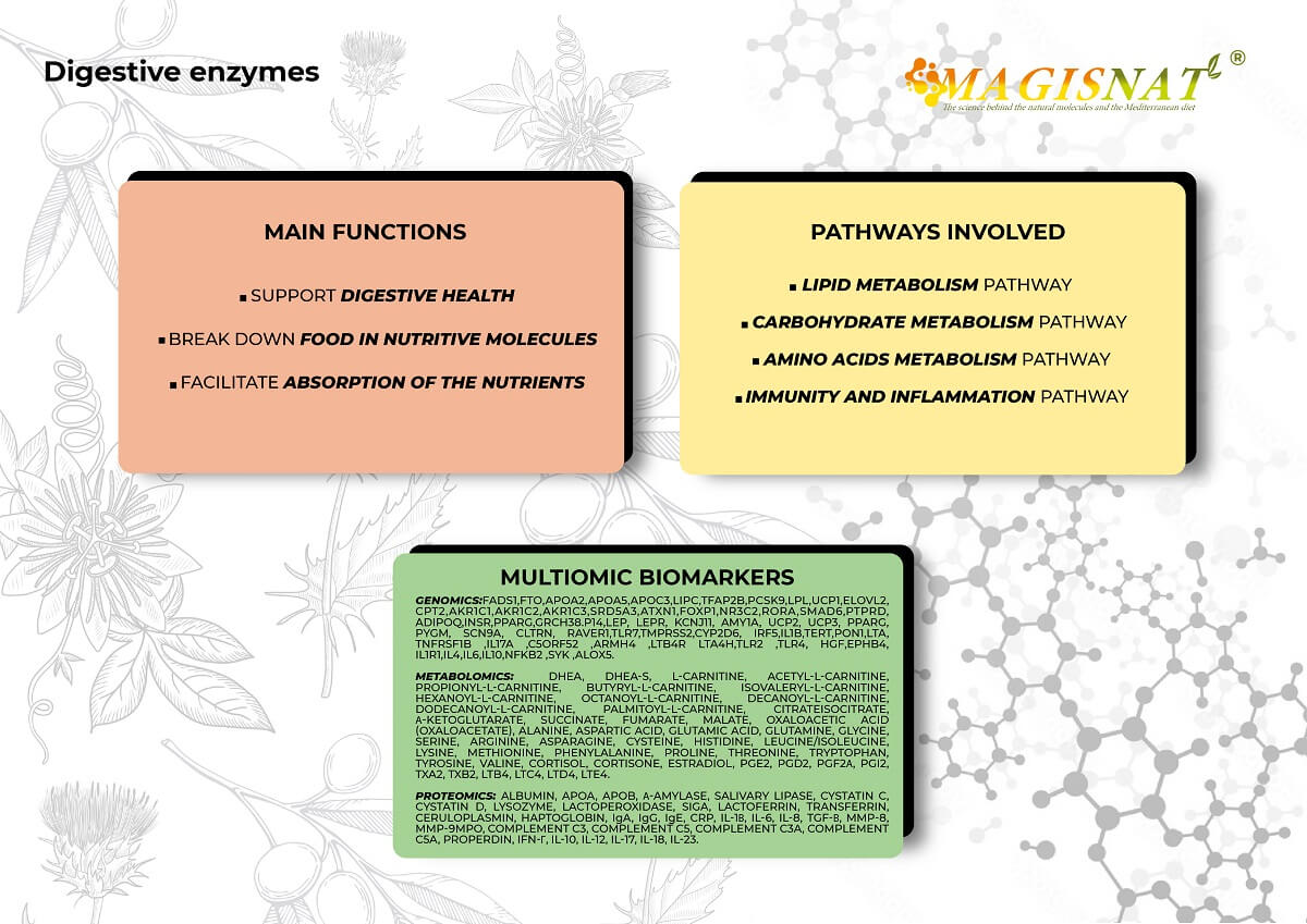 MAGISNAT has developed the OMICS Machine model through the multiomic approach, offering a comprehensive understanding of how genes, metabolites, and proteins intertwine within major categories such as the immune system, oxidative stress, inflammation, longevity, deficiency states, increased demands, specific conditions, physical activity, brain health, and sleep. Our goal is to provide people with the knowledge needed to make informed decisions and optimize individual wellbeing.