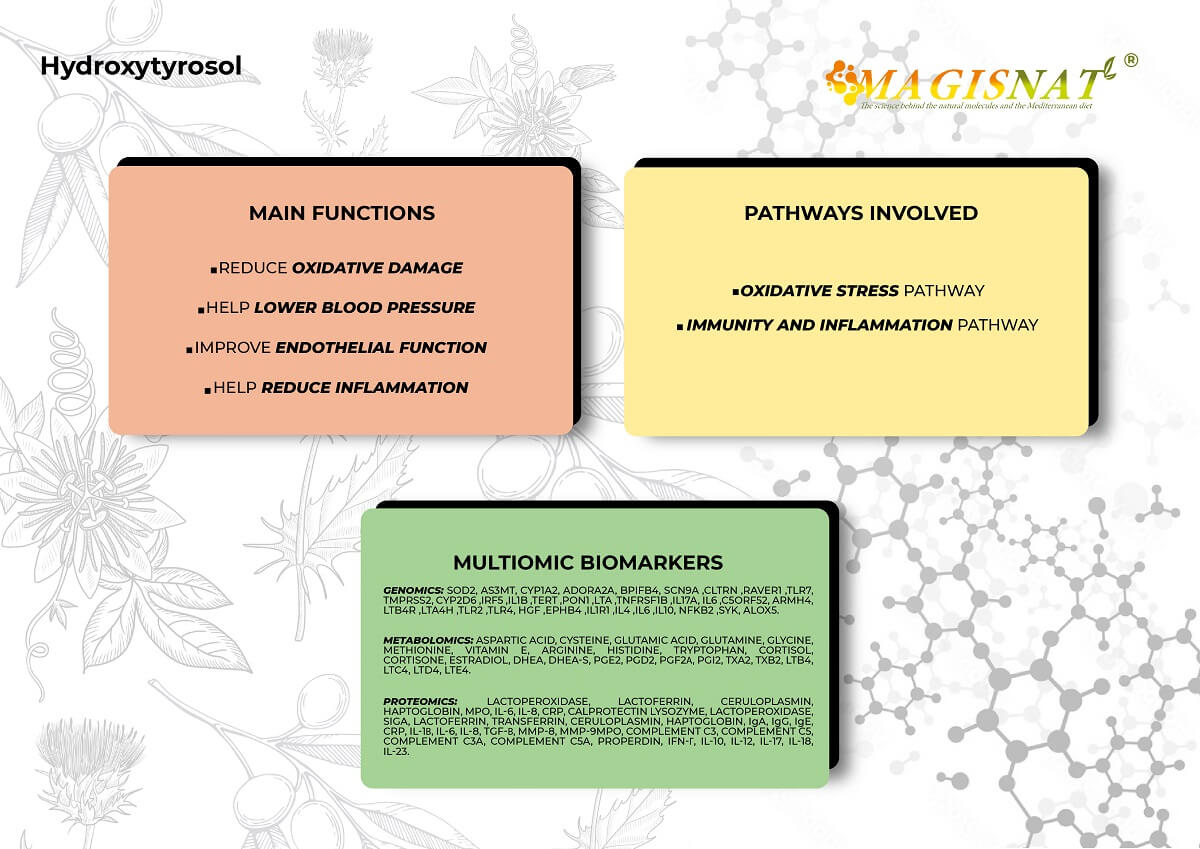 - Bertelli M, Kiani AK, Paolacci S, Manara E, Kurti D, Dhuli K, Bushati V, Miertus J, Pangallo D, Baglivo M, Beccari T, Michelini S. Hydroxytyrosol: A natural compound with promising pharmacological activities. J Biotechnol. 2020 Feb 10;309:29-33. doi: 10.1016/j.jbiotec.2019.12.016. Epub 2019 Dec 26. PMID: 31884046.