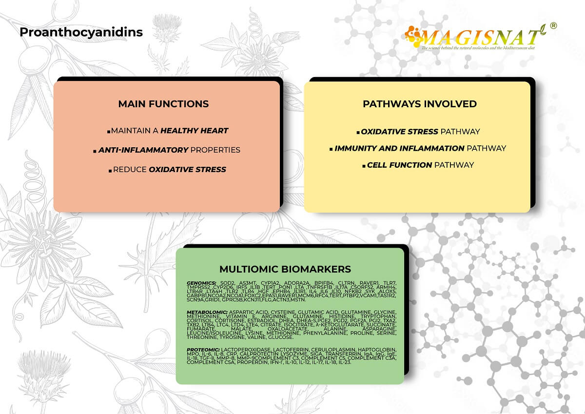 Proanthocyanidins are polyphenolic compounds with a strong antioxidant action, useful for microcirculation and blood circulation. Widely distributed in nature, proanthocyanidins are useful in preventing cardiovascular diseases and have anti-inflammatory properties.