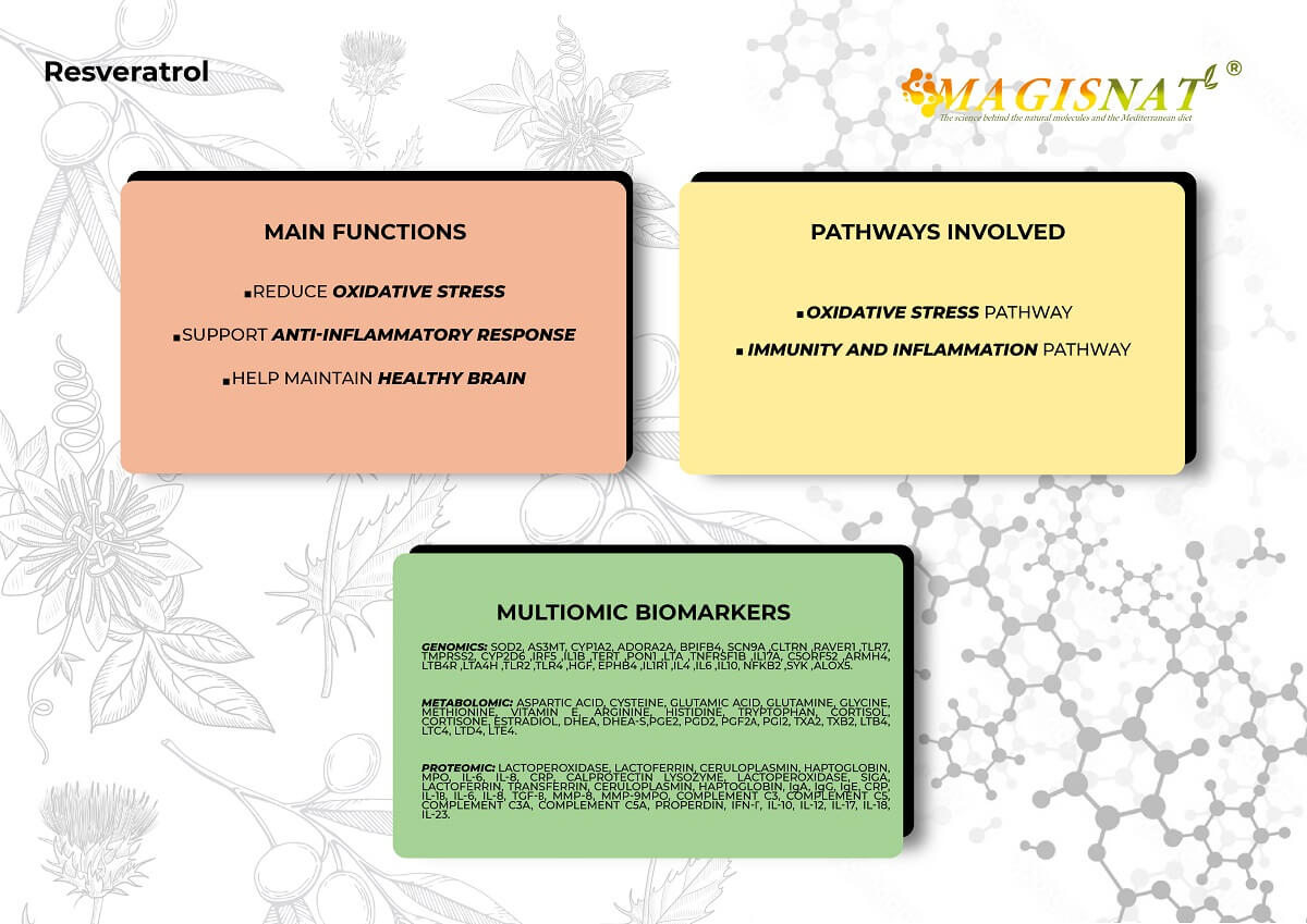 Learn about the functions, pathways involved, OMICS biomarkers, natural sources, and more information about the natural molecules our Research & Development laboratory studies.