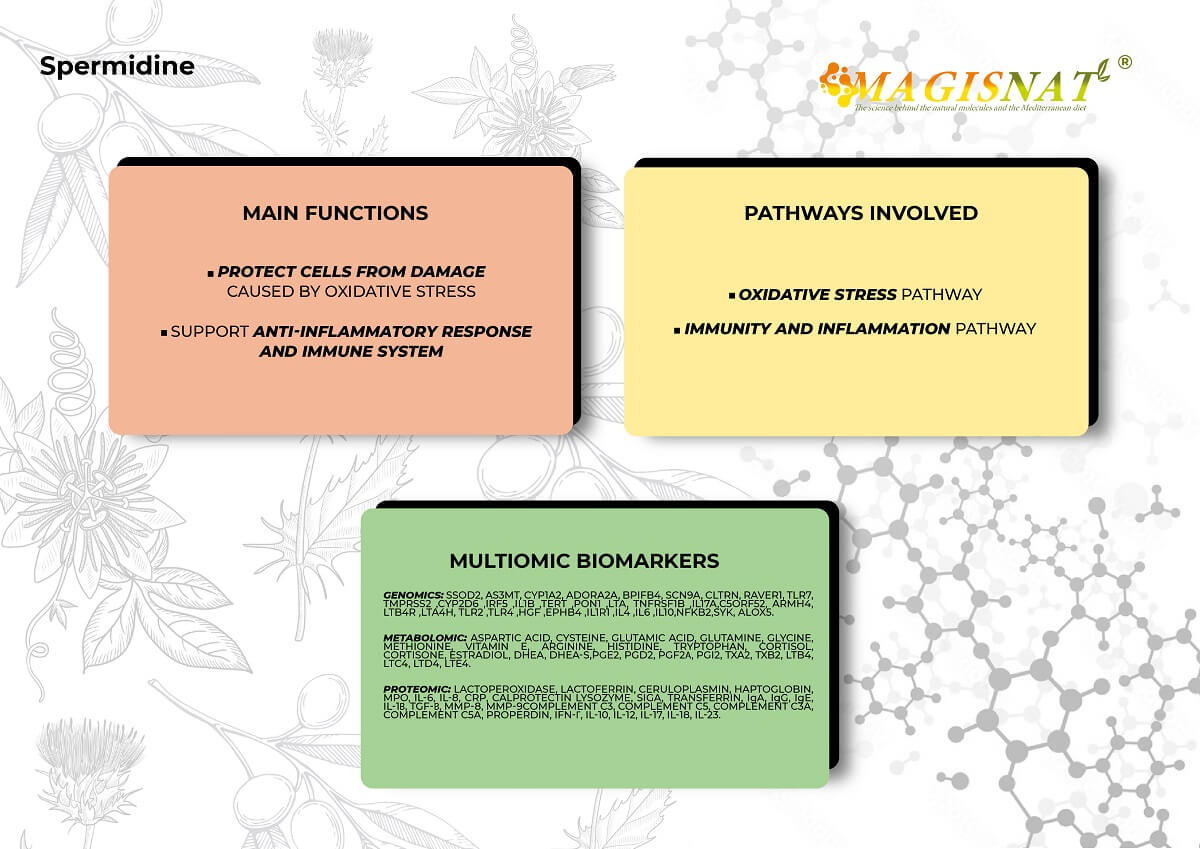 - Ni YQ, Liu YS. New Insights into the Roles and Mechanisms of Spermidine in Aging and Age-Related Diseases. Aging Dis. 2021 Dec 1;12(8):1948-1963. doi: 10.14336/AD.2021.0603. PMID: 34881079; PMCID: PMC8612618.