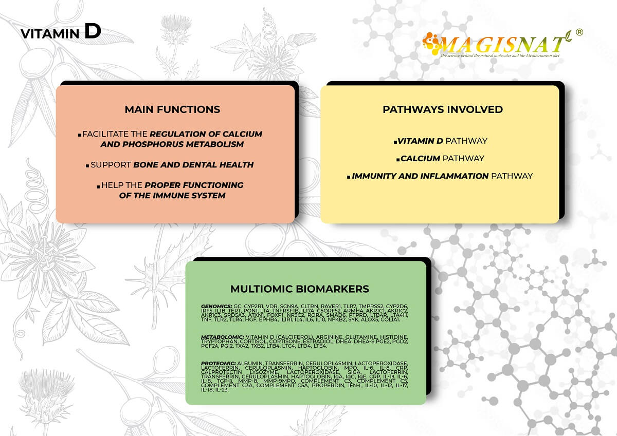 - Genomic: GC, CYP2R1, VDR, SCN9A, CLTRN, RAVER1, TLR7, TMPRSS2, CYP2D6, IRF5, IL1B, TERT, PON1, LTA, TNFRSF1B, IL17A, C5orf52, ARMH4, AKR1C1, AKR1C2, AKR1C3, SRD5A3, ATXN1, FOXP1, NR3C2, RORA, SMAD6, PTPRD, LTB4R, LTA4H, TNF, TLR2, TLR4, HGF, EPHB4, IL1R1, IL4, IL6, IL10, NFKB2, SYK, ALOX5, COL1A1